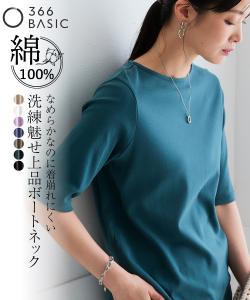 Tシャツ カットソー レディース UVカット 綿100% フライス素材ボートネック5分袖 S/M/L/LL ニッセン nissen