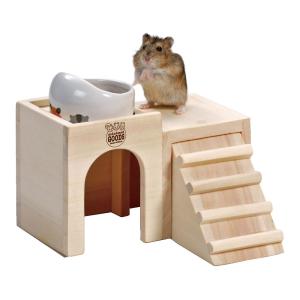 【在庫有・即納】 マルカン ハムちゃんの2階でごはん HT-34 7071340 小動物 ハムスター ハウス ロフト 木製 木 リス 天然木 家 餌 餌台