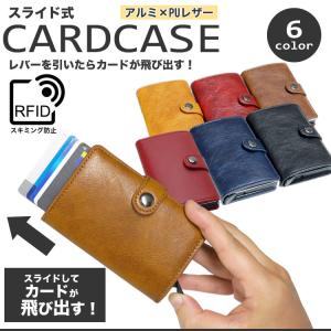 カードケース クレジットカードケース スキミング防止 磁気防止 磁気 アルミ スライド式 PUレザー おしゃれ コンパクト カード入れ