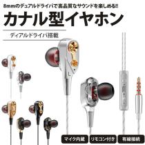 リモコン付き イヤホン カナル型 有線 スマートフォン スマホ 音楽 通話 iPhone Android 軽量 高音質 マイク ディアルドライバ QKZ-CK8