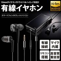インナーイヤー型 イヤホン 有線 マイク内蔵 リモコン付き スマートフォン 音楽 通話 iPhone Android タブレット PR-WIREDEARPHONE