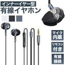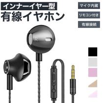 インナーイヤー型 イヤホン 有線 マイク内蔵 リモコン付き スマートフォン 3.5mm 音楽 通話 iPhone Android タブレット 耳にフィット
