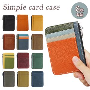 ミニ財布 カードケース カラフル ツートン シンプル 薄型 スリム 軽量 PUレザー 8枚収納 チャック付き カード入れ メンズ ユニセックス