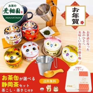 お年賀 お歳暮 ギフト お茶 静岡茶 選べるお茶缶 茶こしのギフトセット 日本茶 2本箱入 縁起物 招き猫缶 ふくろう缶 だるま缶 お茶 緑茶