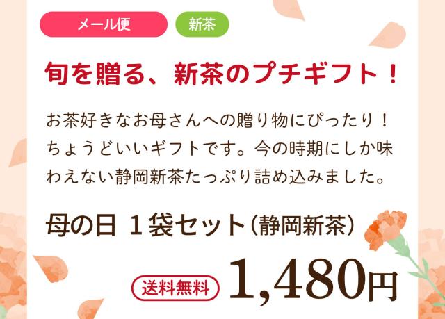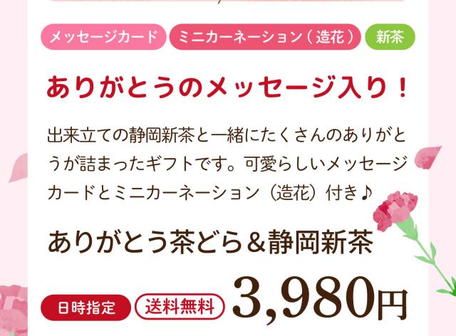 【早割:ポイント5%】母の日 2026 ギフト ありがとう静岡新茶3袋箱入 母 祖母 人気 上品 ミニカーネーション メッセージカード付き プレ