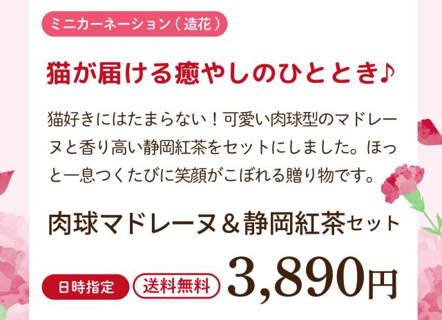 【早割:ポイント5%】母の日 2026 ギフト にくきゅうマドレーヌ2種&キャット缶 母 祖母 人気 スイーツ かわいい ミニカーネーション プ