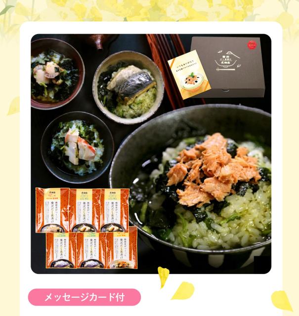 【早割:ポイント5%】母の日 2026 ギフト 贅沢だし茶漬け6食 & お茶漬け用ティーパックセット 母 祖母 人気 上品 お茶漬け メッセージ
