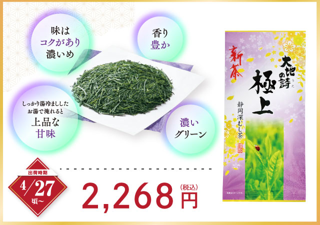 新茶 ギフト 極上・極上望金印 100g×2袋箱入り 化粧箱 緑茶 お茶 高級茶 上級茶 被覆茶 静岡茶 牧之原ブランド茶 被覆 被せ 冷茶 水出