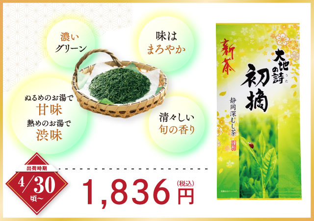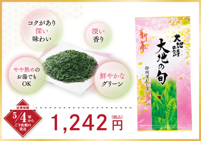 【新茶予約】 大地の旬 新茶 100g 静岡茶 お茶の葉 茶葉 お茶 深蒸し茶 緑茶 高級茶 上級茶 日本茶 ギフト お土産 贈答 一番茶