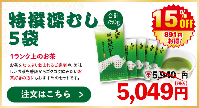 【大蔵ざらえセール対象:15%OFF】 特撰深むし150g 5袋セット (750g) 深むし茶 緑茶 煎茶 茶葉 お茶 日本茶 荒畑園 深蒸し茶 深むし 静