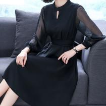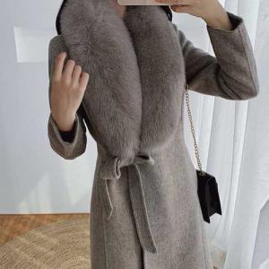 ロングコート グレー ファー フォックス リネン ウエストリボン 調整可能 ミディ丈 ロング丈 長袖上品 エレガント 高級感 通勤 大人 清楚