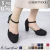 パンプス ストラップ 黒 痛くない セパレート スカラップ ラウンドトゥ アンクル 6.5cmヒール No.5480 リバティードール