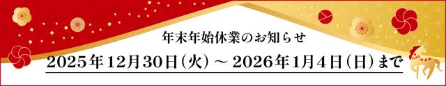 【年末年始休業】2025年12月30日(火)〜2026年1月4日(日)