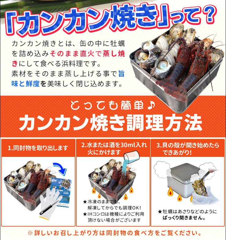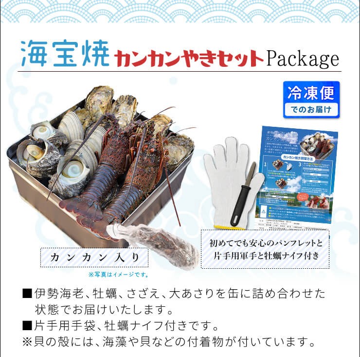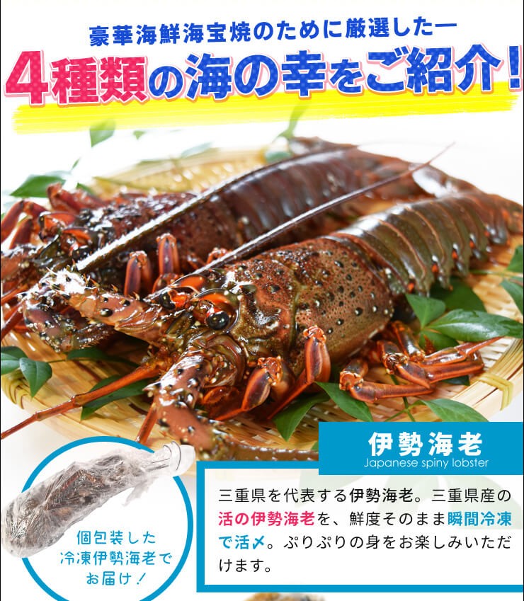 美し国 豪華海鮮海宝焼 カンカン焼き 伊勢海老 中サイズ1個 ほたて 片貝10個 ホンビノス貝2個 牡蠣4個 さざえ2個(牡蠣ナイフ、片