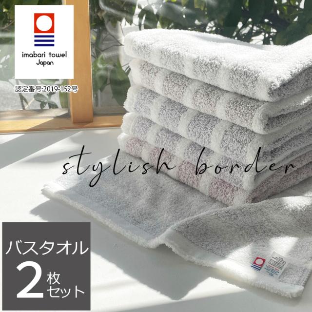 《5,500円→2,800円》バスタオル タオル 日本製 今治タオル 同色 2枚セット おしゃれ 国産 スタイリッシュ ボーダー 2枚組 高級 吸水力