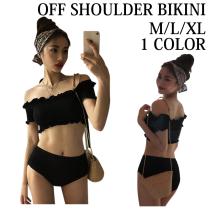 水着 レディース ビキニ 体型カバー ハイウエスト 水着 2点セット 二の腕 カバーアップ 肩だし 肩あき パッド一体型 ワイヤー入り リブ