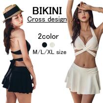 クロスデザイン ビキニ 3点セット 水着 レディース 体型カバー スカート バックリボン