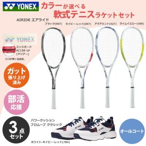 「ガット張り上げ済み」ヨネックス YONEX セットでお得 ソフトテニスラケット 部活応援(オールコート用)エアライド +シューズ+エッジ