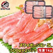 超特大 5L ズワイガニ ポーション かにしゃぶ お刺身用 冷凍総重量 1kg 500g×2パック 合計30本【生食用 かに ポーション ずわいがに カ
