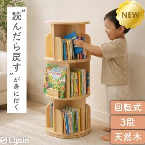 ライシン 回転式本棚 3段 A4 図鑑 絵本 子ども 回転 本棚 【1年保証】