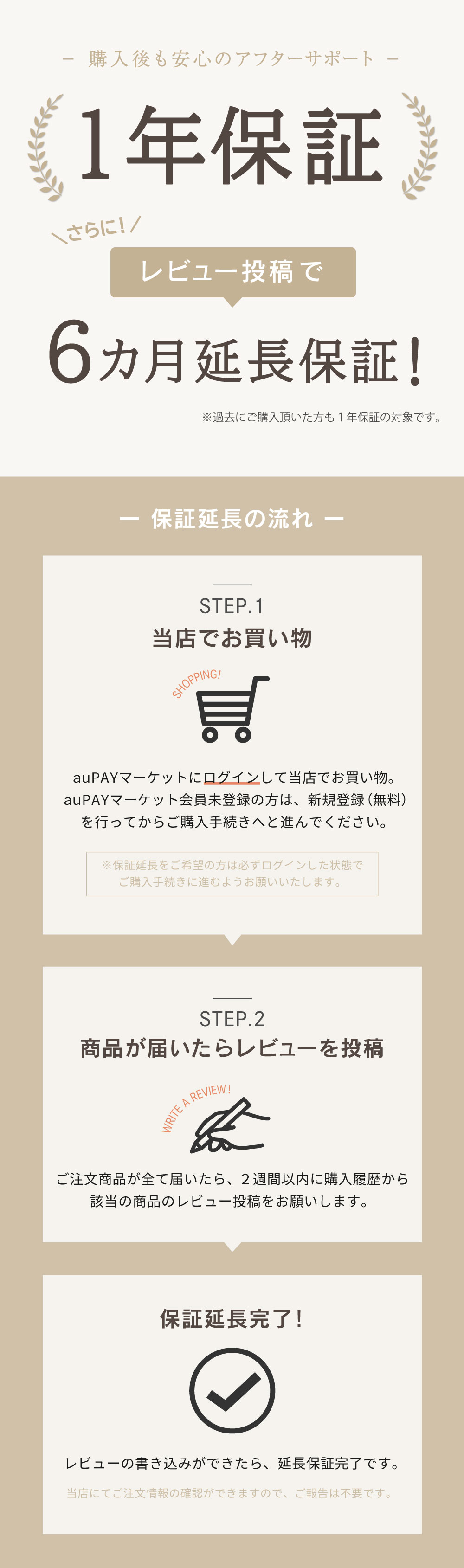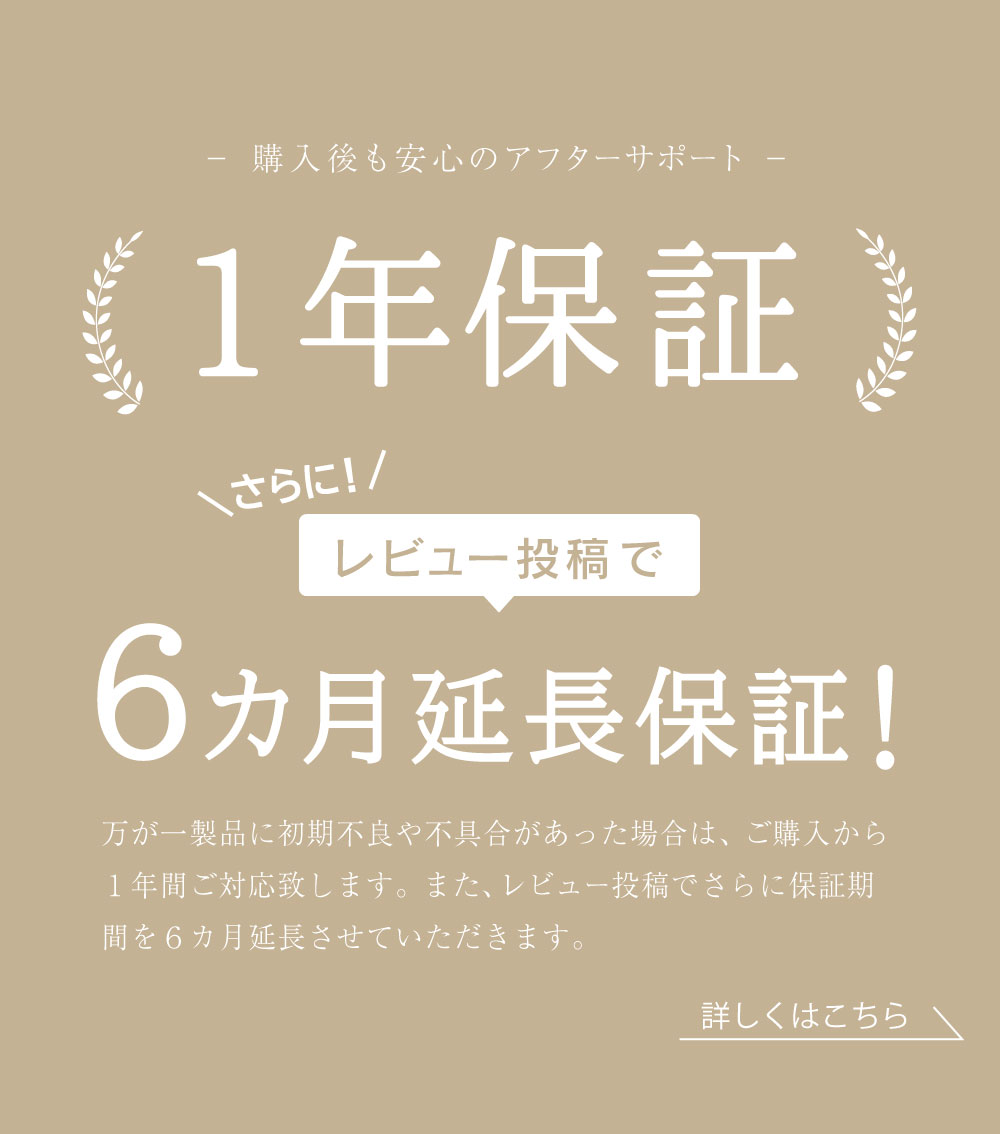 ご購入いただきました商品にはすべて製品保証が付いております。