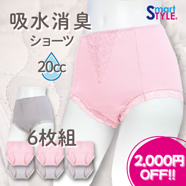 SALE!! 2,000円OFF★ ポイント5倍 【新着】6枚組 吸水ショーツ 消臭 抗菌防臭 無地 シンプル 女性用 吸水ショーツ 失禁ショーツ 吸水パン