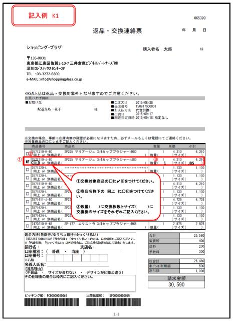 「返品・交換連絡票」の記入方法については下記をご参照ください。