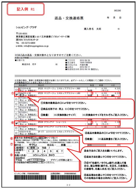 「返品・交換連絡票」の記入方法については下記をご参照ください。