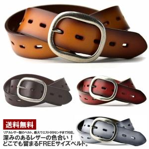 ベルト メンズ レザーベルト バックルオーバル型 本革 ビンテージ染色 センターラインホール フリーサイズ ファッション小物【Z2A】
