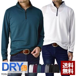 吸汗速乾 長袖 ポロシャツ ハーフジップ カットソー メンズ ドライ ストレッチ ゴルフウェア UV ゆったり トップス【A5L】【パケ1】