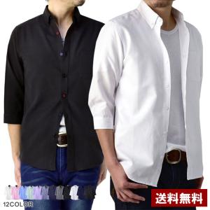 シャツ 無地 七分袖 7分 6分袖 五分袖 5分 ボタンダウン ボタンダウンシャツ メンズ オックスフォード トップス【C3G】【パケ2】