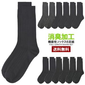メンズ 消臭加工 靴下 6足組 クルー丈 フルレングス ソックス 6P ハーフパイル 底パイル【Z3M】【パケ1】