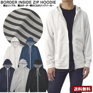 メンズ パーカー ジップアップ 長袖 ダブルフェイス 裏 ボーダー フード付き カンガルーポケット 羽織り アウター トップス スウェット