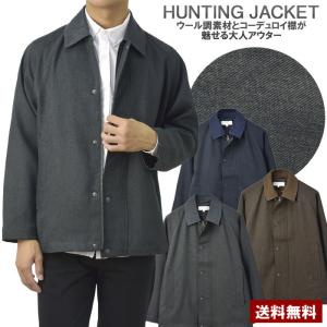 アウター メンズ ブルゾン ミリタリー ジャンパー ハンティングジャケット ウールライク メルトン調 秋冬 コーデュロイ 襟切替 フィール