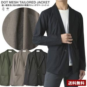 メンズ ドットメッシュ テーラードジャケット サマージャケット 夏 吸水速乾 軽量 ストレッチ 通気性 DRY UV対策 カジュアル ビジカジ【B