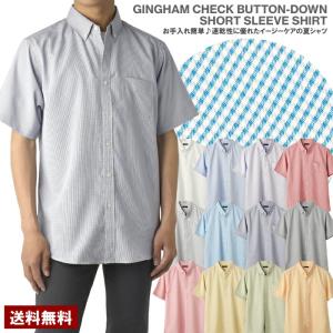 シャツ 半袖 メンズ ギンガムチェック ボタンダウン イージーケア ビジネス カジュアル クールビズ 30代 40代 50代 きれいめ シンプル ベ