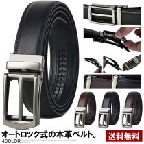 オートロックベルト メンズ レザーベルト 牛革 紳士 ロングサイズ ビジネス フォーマル ワンタッチ フリーサイズ【Z9C】【パケ2】