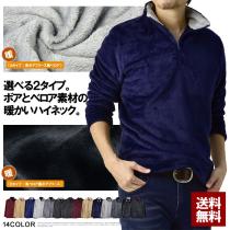 ボアフリース ハイネック メンズ タートルネック カットソー ハーフジップ ベロア あたたかい トップス 秋 冬 ポロ【B9Q】【パケ1】【A】