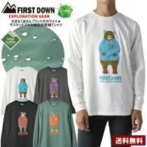 FIRSTDOWN ファーストダウン メンズ 長袖Tシャツ ベアプリント くまさんプリント 軽量 速乾 撥水 テフロン加工 発泡プリント サスティナ