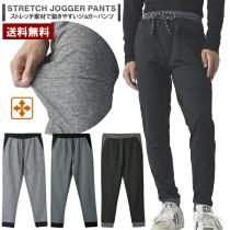 メンズ ストレッチ天竺 ジョガーパンツ ウエストギャザー ウエスト紐 配色切替 吸汗速乾 新作【C3A】【パケ1】