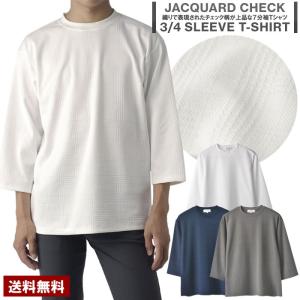 メンズ ジャガード チェック 7分袖 Tシャツ ハンパ袖 織柄 キレイめ カットソー トップス【A6K】【パケ1】【A】