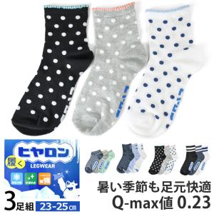 ヒヤロン 靴下 レディース 婦人 3足組 接触冷感 抗菌防臭 つま先かかと補強 Q-max 0.23 選べる2丈【A4Q】【送料無料】【メール便1】 春新