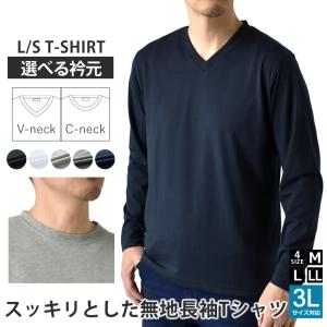 長袖Tシャツ メンズ ロンT 選べる クルーネック Vネック M L LL 3L 無地 ブラック ホワイト 杢グレー 杢チャコール ネイビー トップス カ