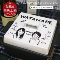 送料無料 プレゼント ギフト 名入れ 似顔絵 ゆるかわ 角鍋 Sサイズ 土鍋 1~2人用 ガス&IH対応 ki118 | 土鍋 名入れ おしゃれ 名前入り