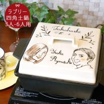 名入れ 結婚祝い プレゼント LOVE 2人の手描き 似顔絵 土鍋 (角)(四角8号) ガス&IH対応 ki40 ギフト 似顔絵 おしゃれ 名前入り 結婚祝