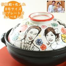 送料無料 名入れ プレゼント 結婚祝い 似顔絵 土鍋 8号 ガス&IH対応 (似顔絵二名様分)(和) | おしゃれ 名前入り 鍋 ギフト 日本製 i