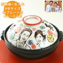 送料無料 結婚祝い 名入れ プレゼント 似顔絵 土鍋 9号 ガス&IH対応 (似顔絵二名様分) | おしゃれ 名前入り 鍋 炊飯 ご飯 ih かわいい