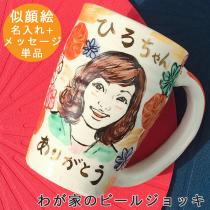 結婚祝い 名入れ 結婚記念日 ギフト かわいい おしゃれ 誕生日 プレゼント 家族 お揃い 似顔絵 わが家のビールジョッキ 陶器 プレゼント