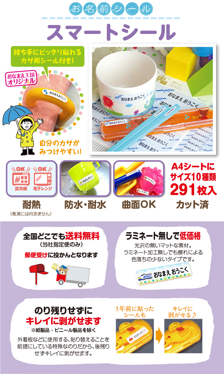 [防水 耐水]お名前シール 【スマートシール】シンプルデザイン / 名前シール おなまえ 名前 ネーム シール レンジ 食洗器 幼稚園 保育園
