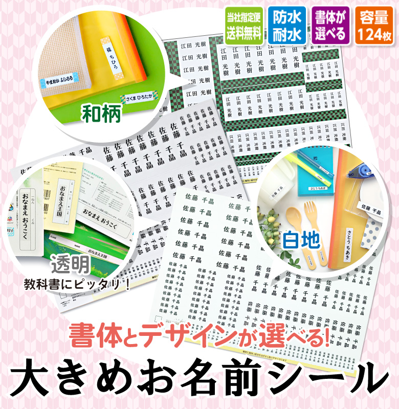 大きめお名前シール【白地】 書体が選べる【5書体】 お名前シール おなまえシール 名前シール ネームシール 名前 シール 大きい 大きめ